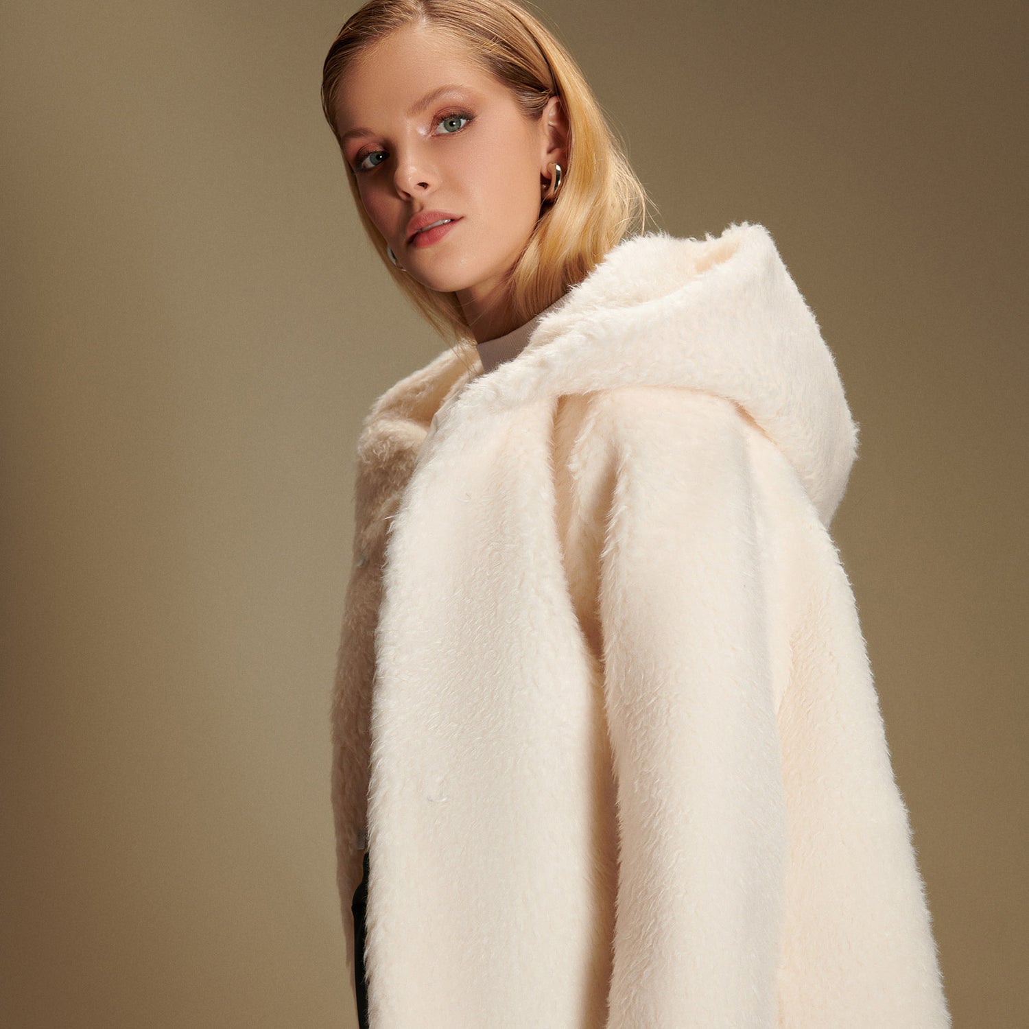 Elena Hooded Coat in Ecru