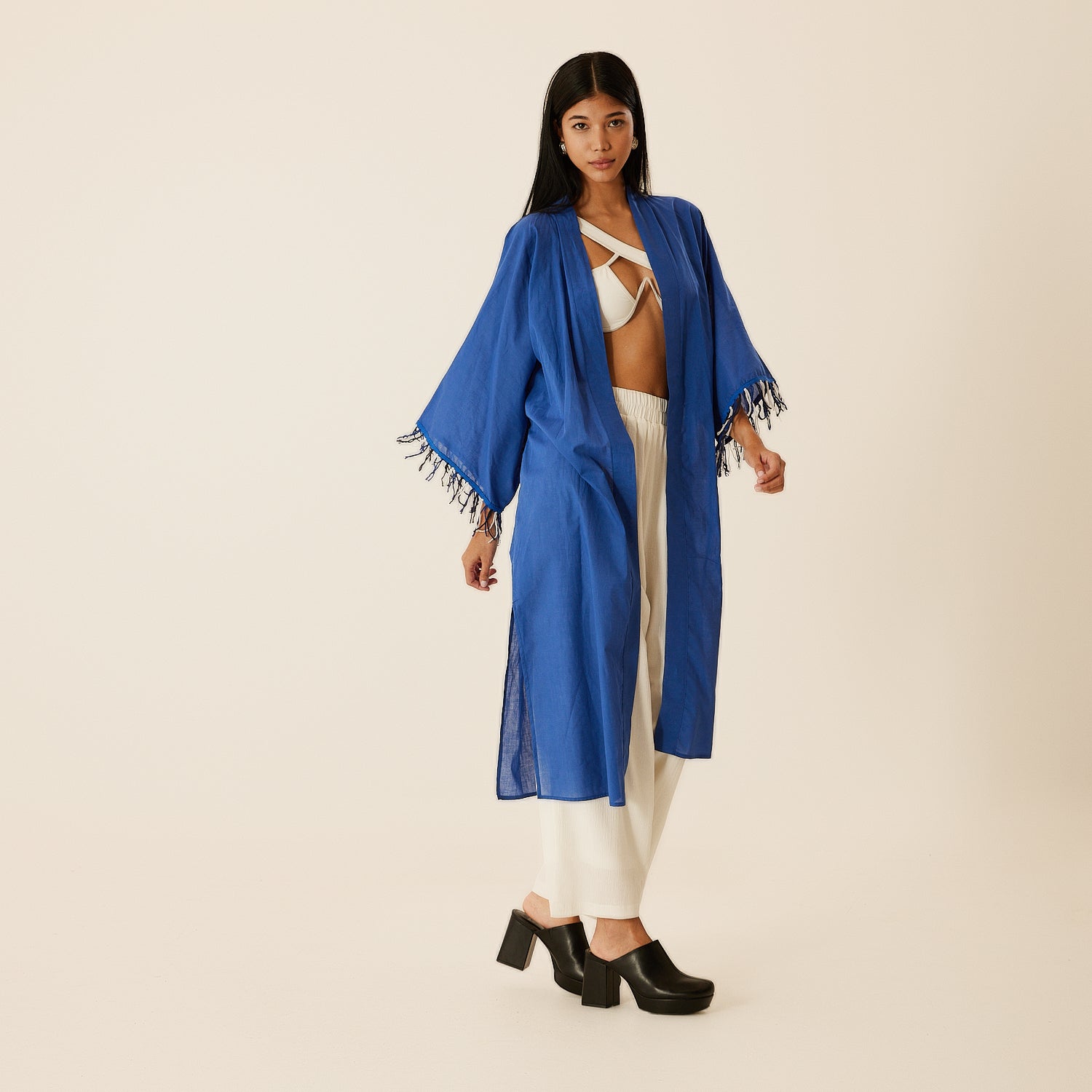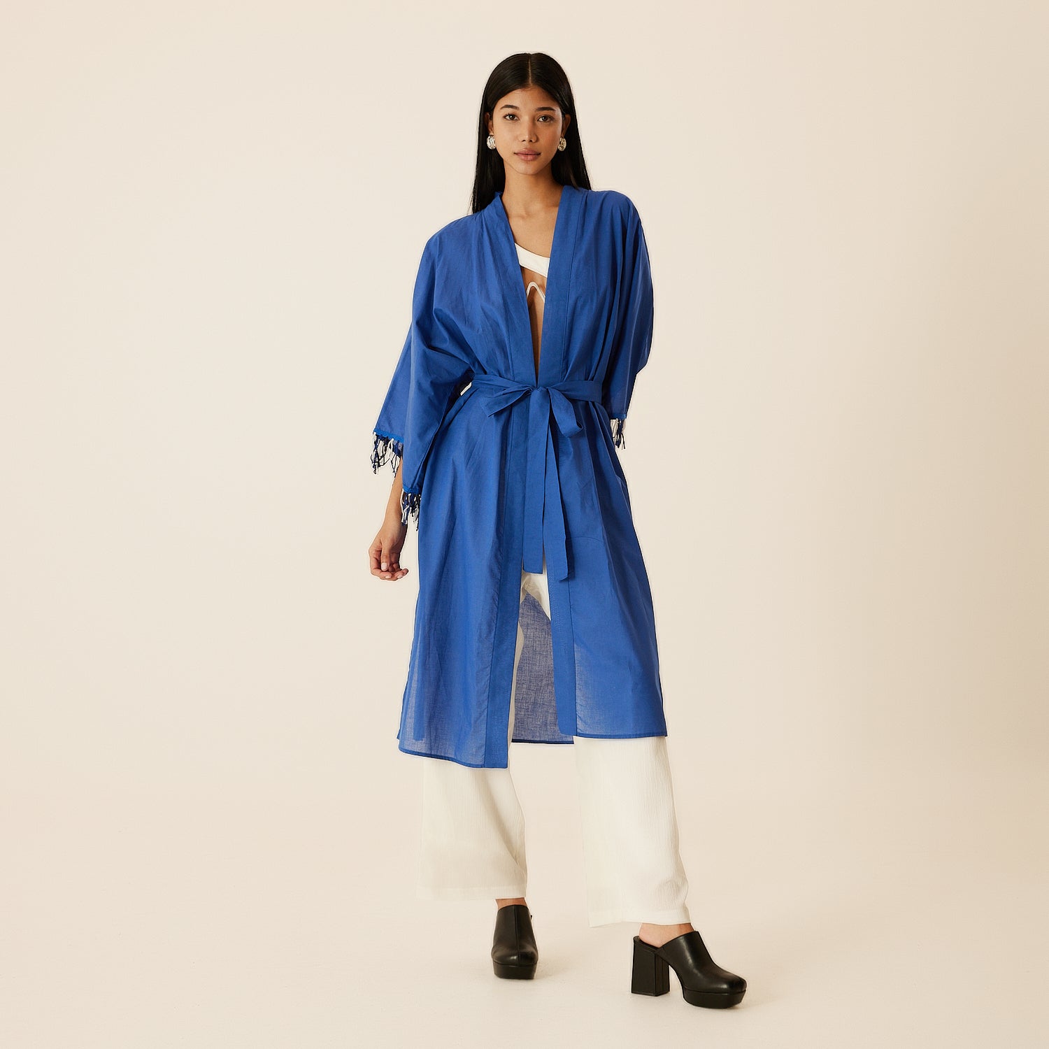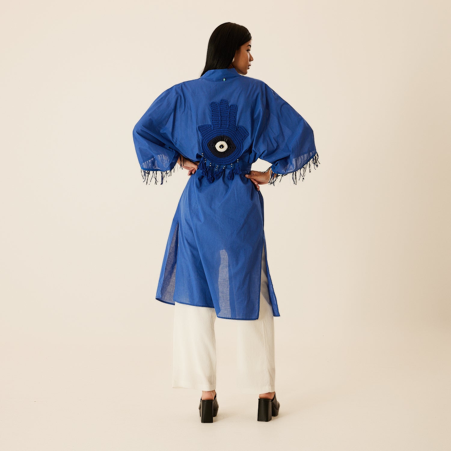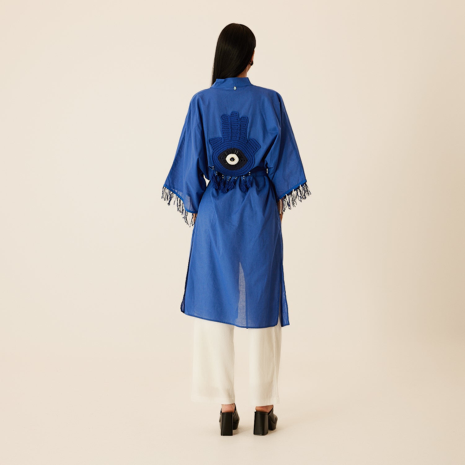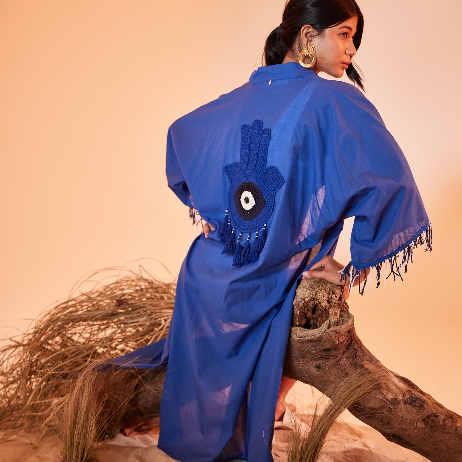 Hamsa Hand Organic Cotton Kaftan in Blue