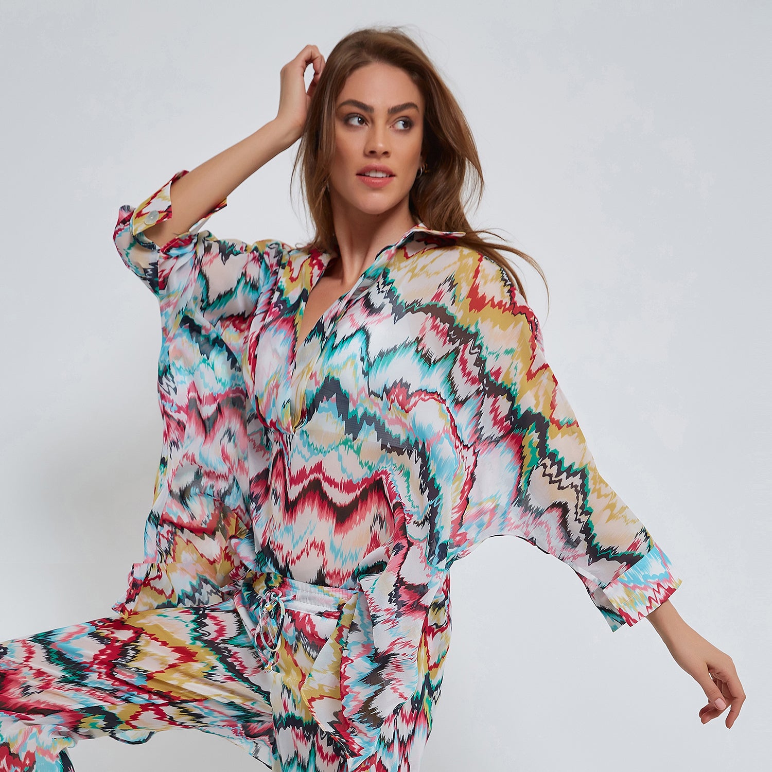 This Zig-Zag tunic comes in one size which fits all sizes.
