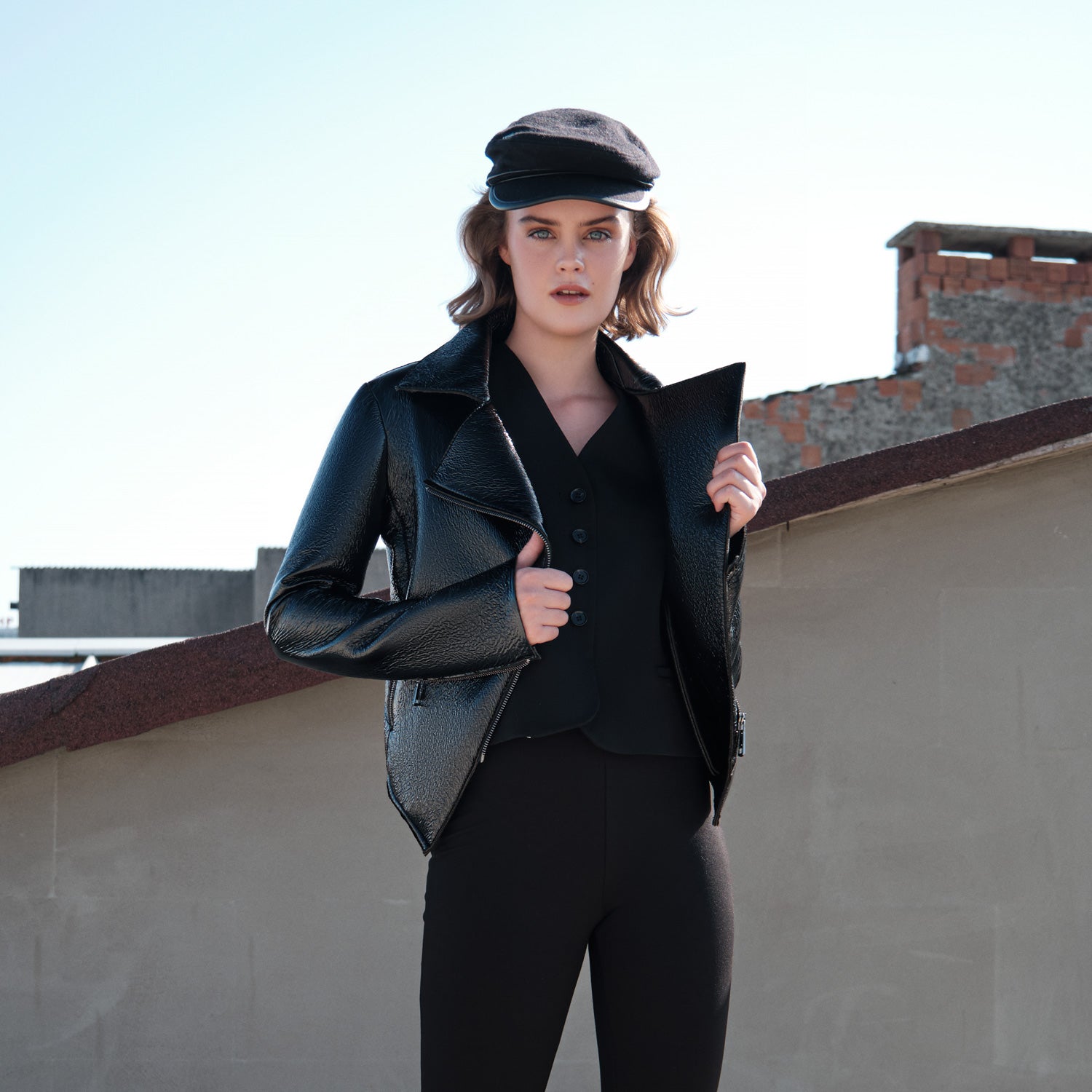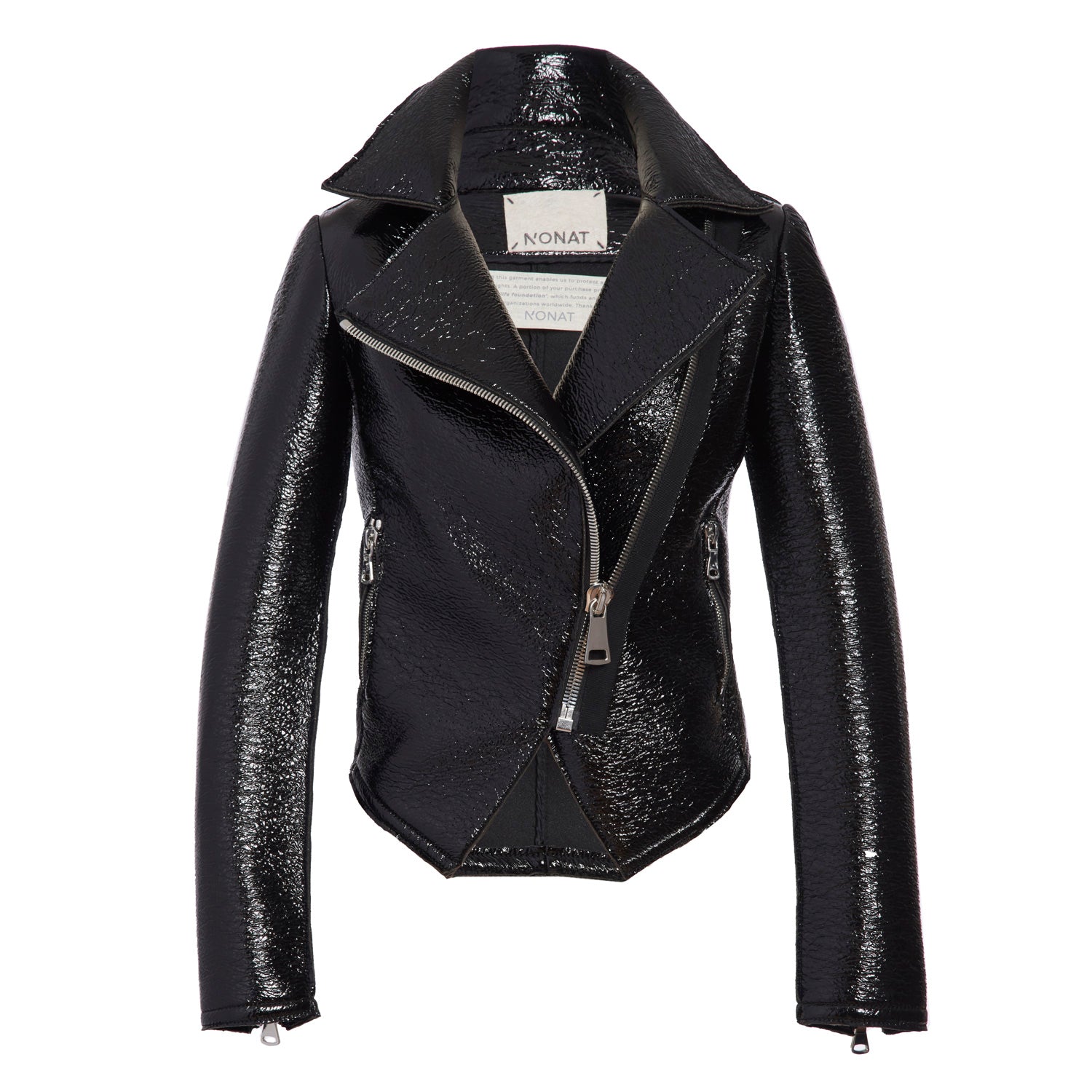 For the chic rebel with a cause, our versatile motorcycle jacket offers an updated tailored fit with beautiful silver metal Oeko-tex Certified zipper details. The perfect addition for your year-round staple wardrobe.