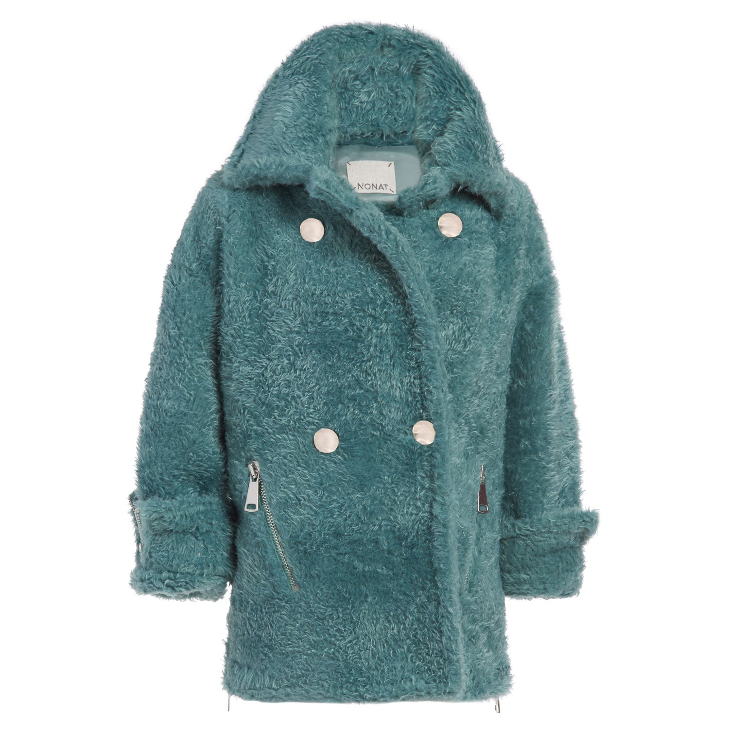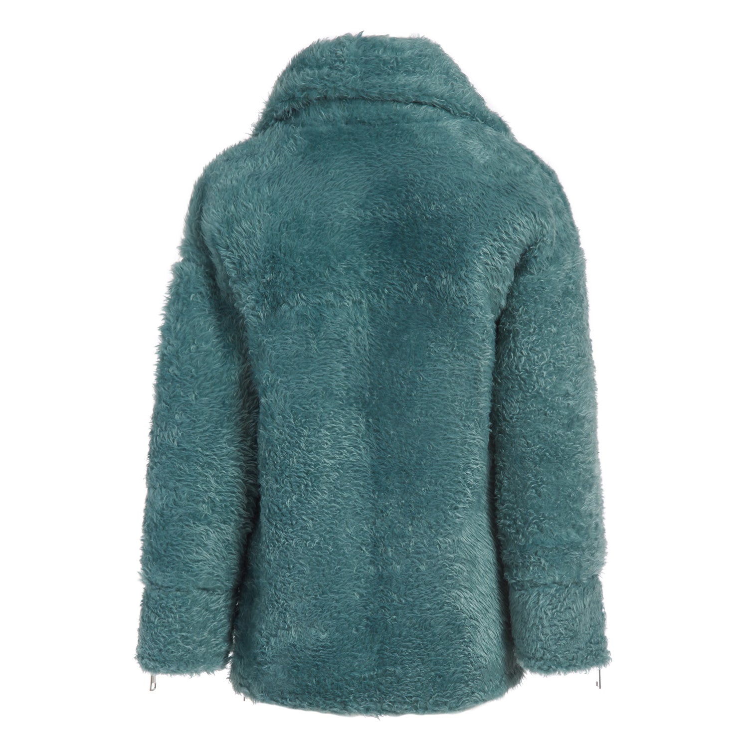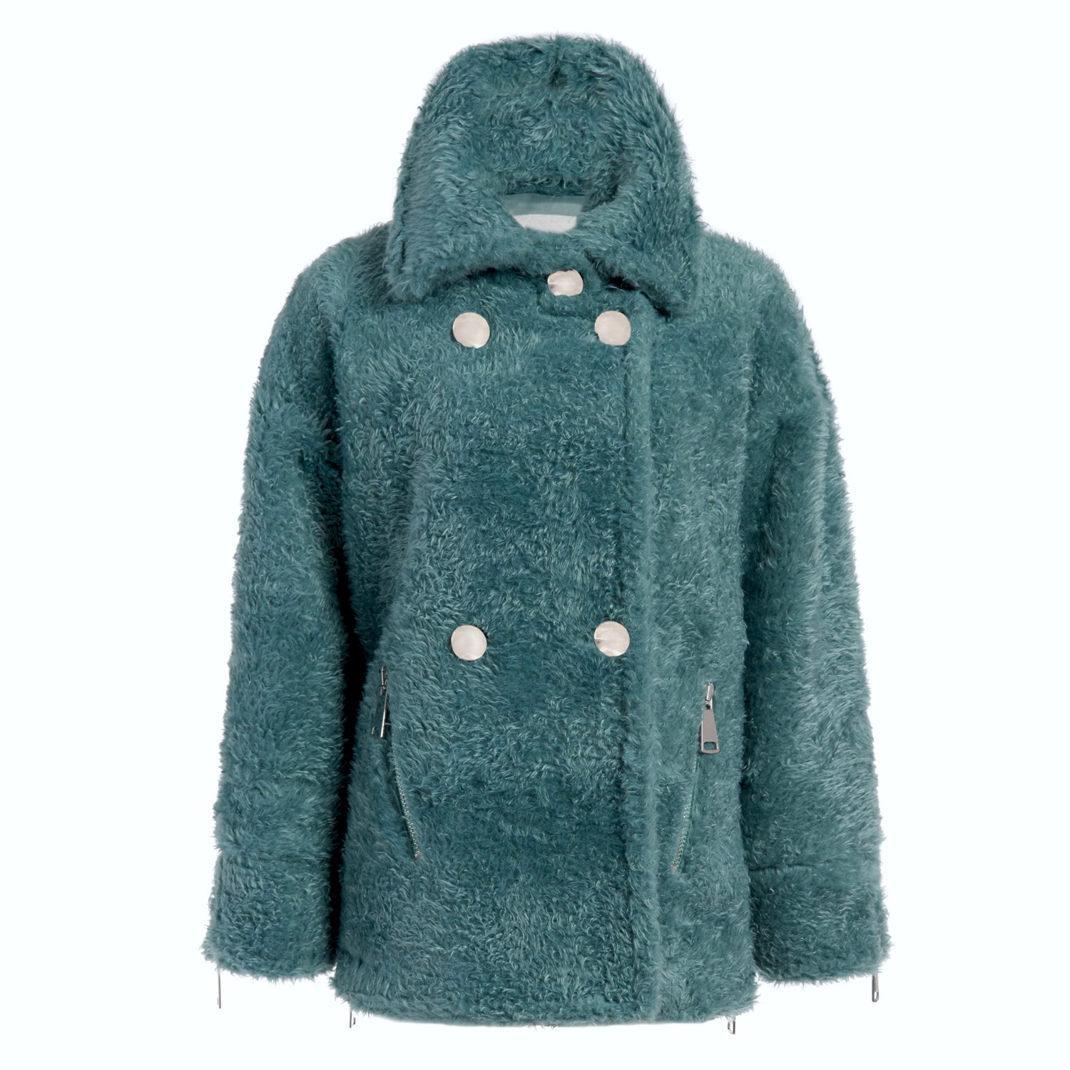 Timeless chic versatility with this double breasted jacket in rich textured faux fur with gold button, comfy metal zip pocket and cuff detail. Fabrics and trims are made from eco-friendly recycled materials.