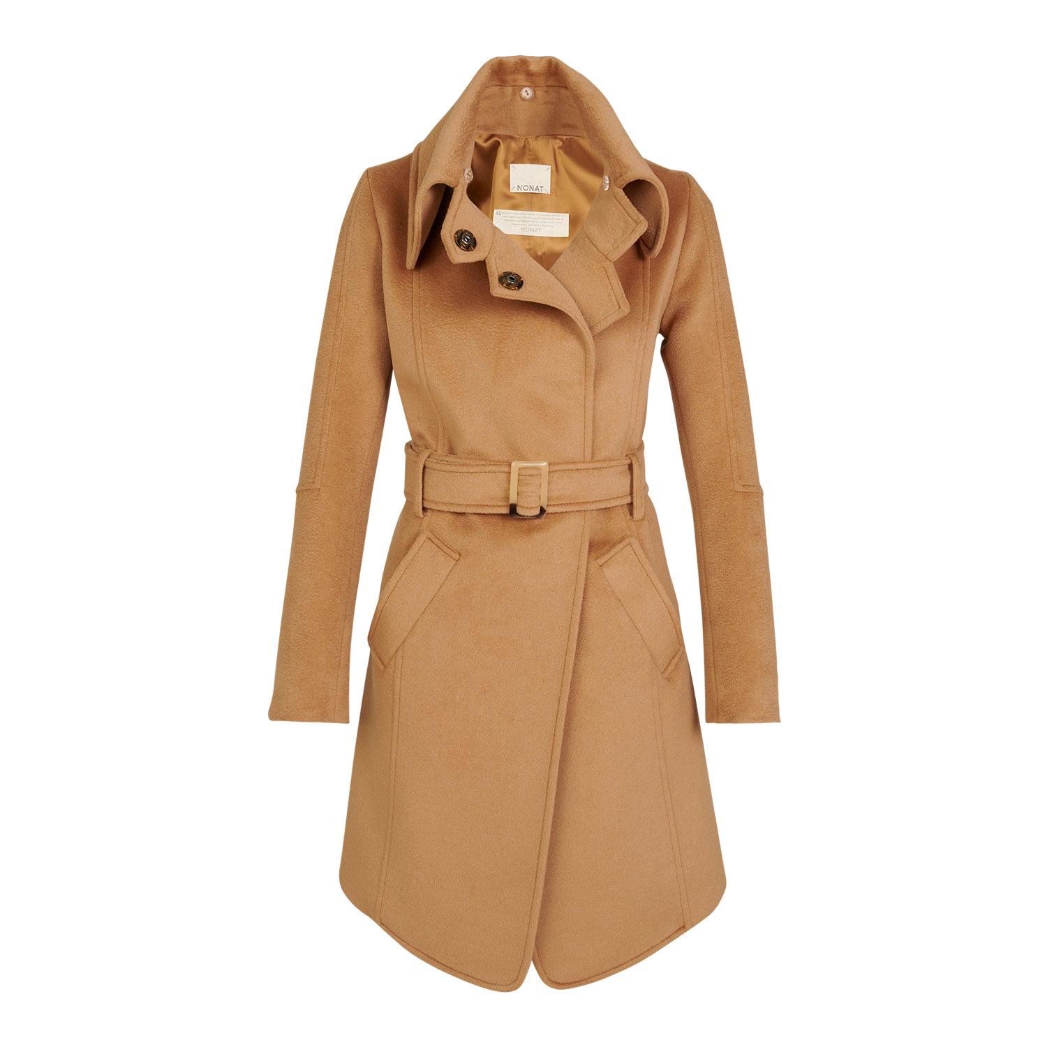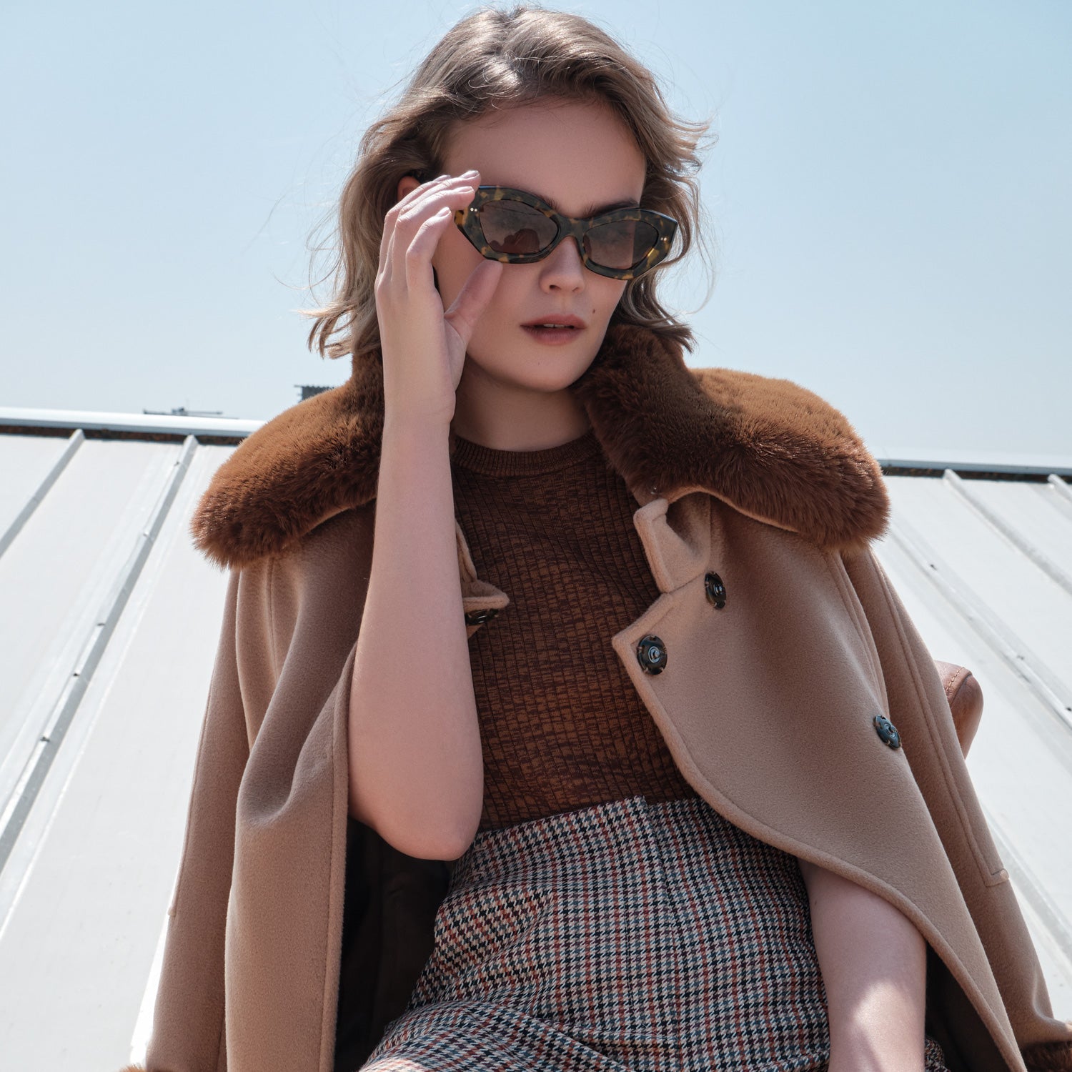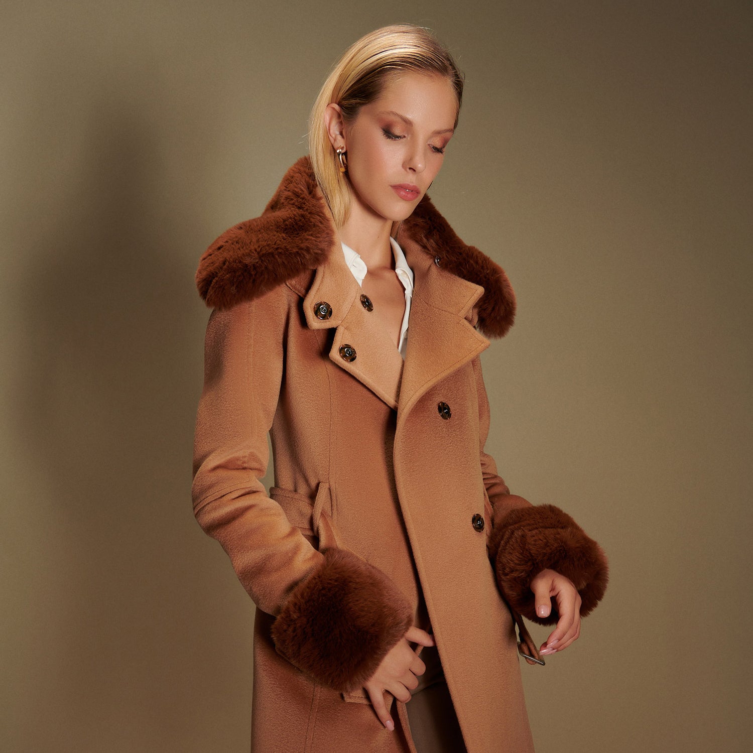 This fitted wool trench coat will be a timeless piece in your wardrobe. It comes with a detachable faux fur collar and cuffs and belt, which comes included. Fabric, hand sewed snaps, and buckles are made from eco-friendly materials. Can be worn open or with a metal snap closure.
