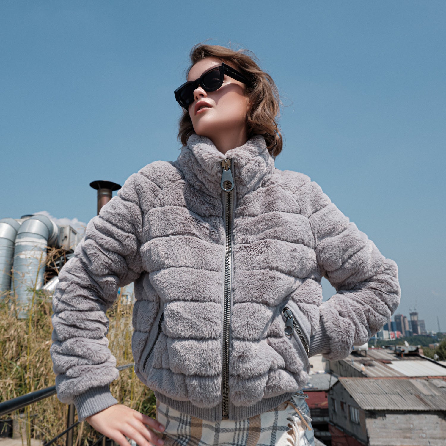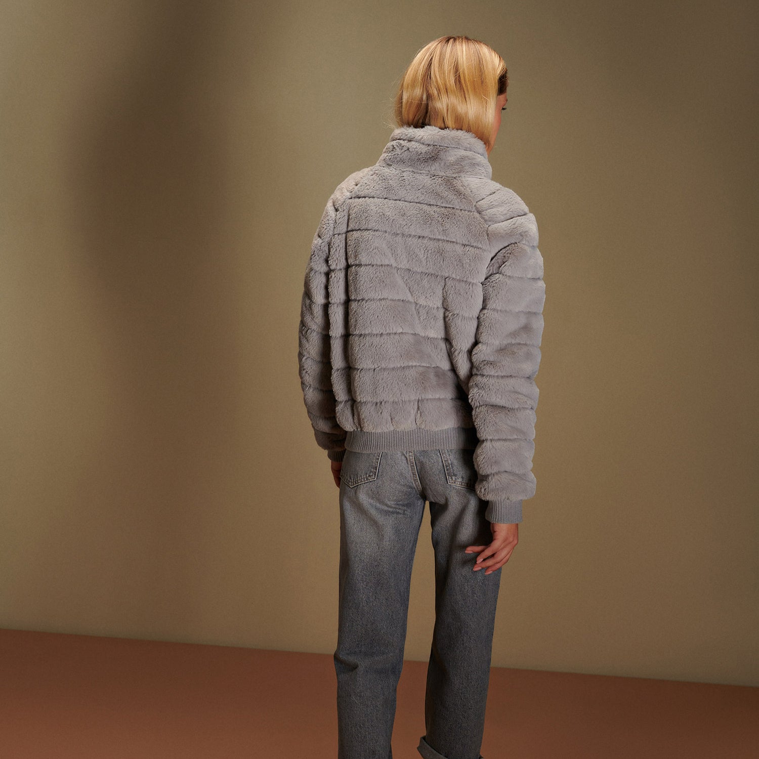 This must-have quilted, faux fur bomber jacket with high quality metal zipper front closure and 2 pockets, finished with ribbed-knit trim, will keep you perfectly styled out from morning to evening. Fabrics and trims are made from eco-friendly recycled materials. Zippers are Oeko-tex Certified.