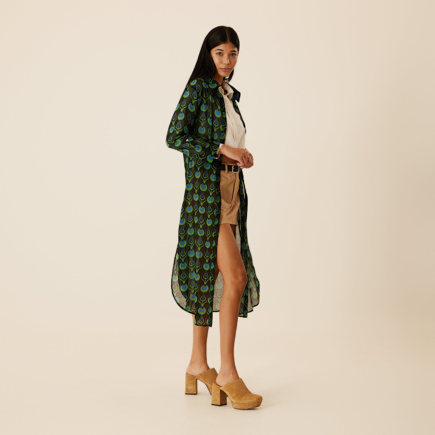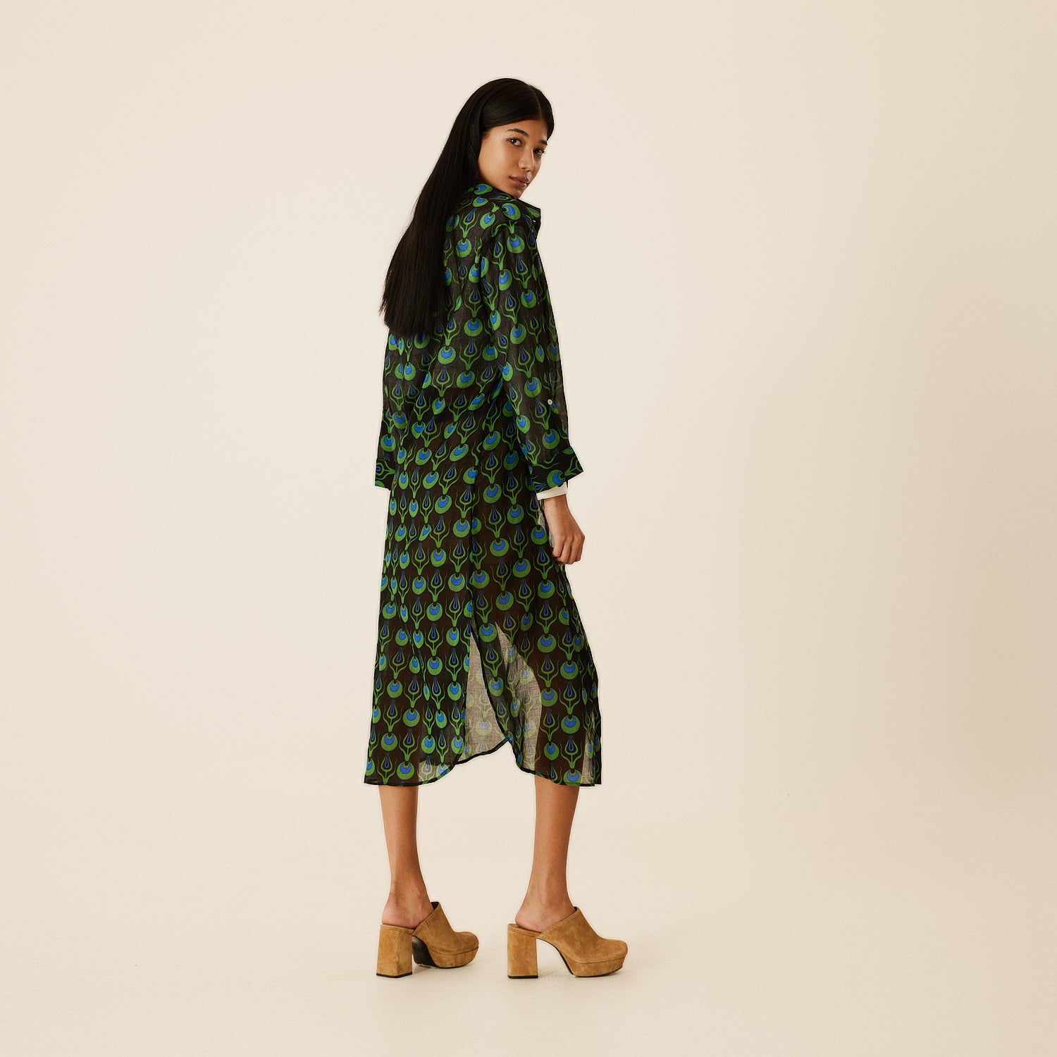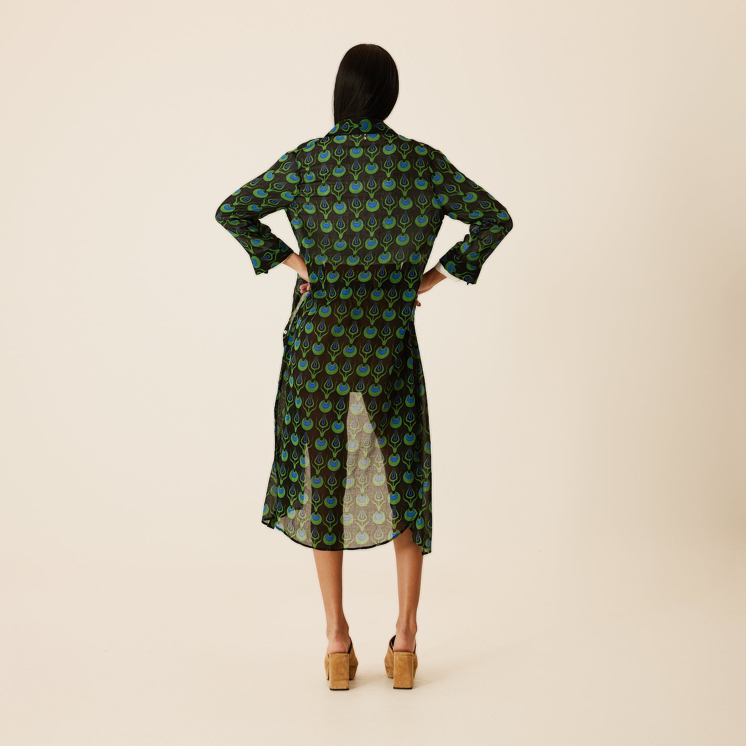 Linda Long Shirt Dress with Tulip Design in Black