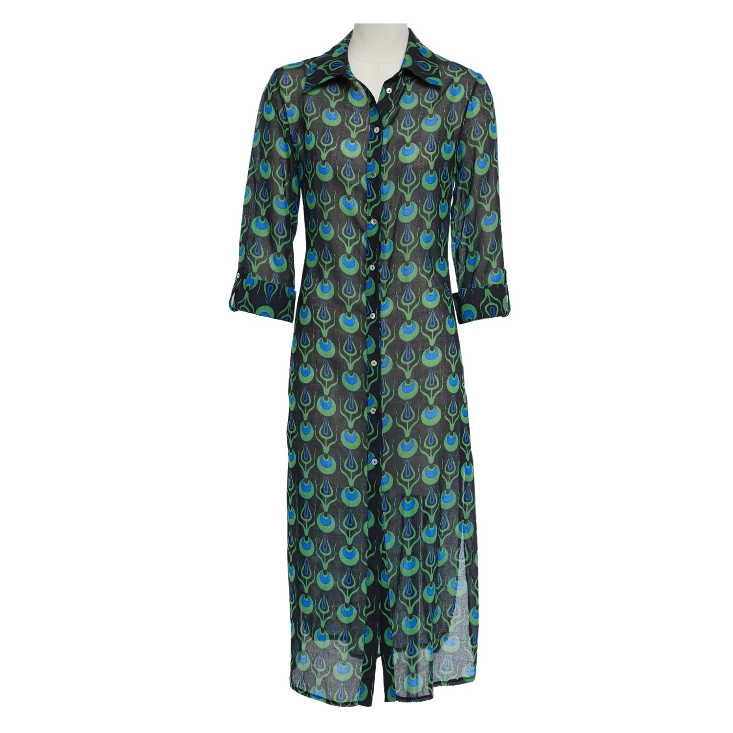 Versatile design that can be worn as a dress, jacket or a kaftan on your swimsuit for the beach. It’s made with organic cotton in a lovely Turkish tulip pattern. The signature evil eye at the nape of the neck will protect you from bad luck according to Turkish tradition.