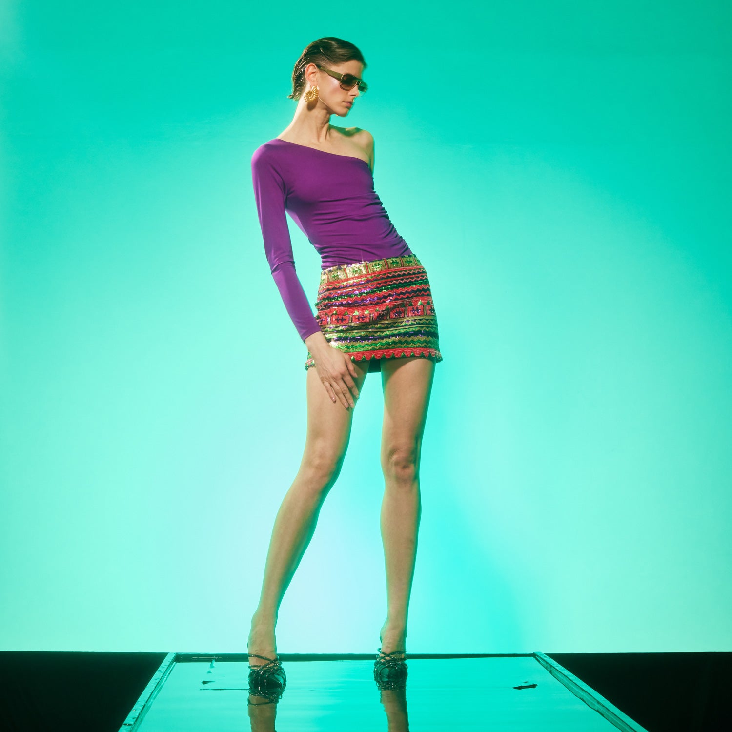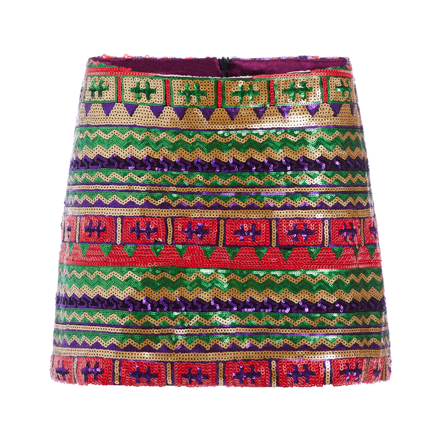 Its colorful pattern makes this mini a-line skirt even more unique! It is doubled with a silky lining, and closure is with a zip in the back. It will be the indispensable piece of your wardrobe. Perfect for weddings and parties.