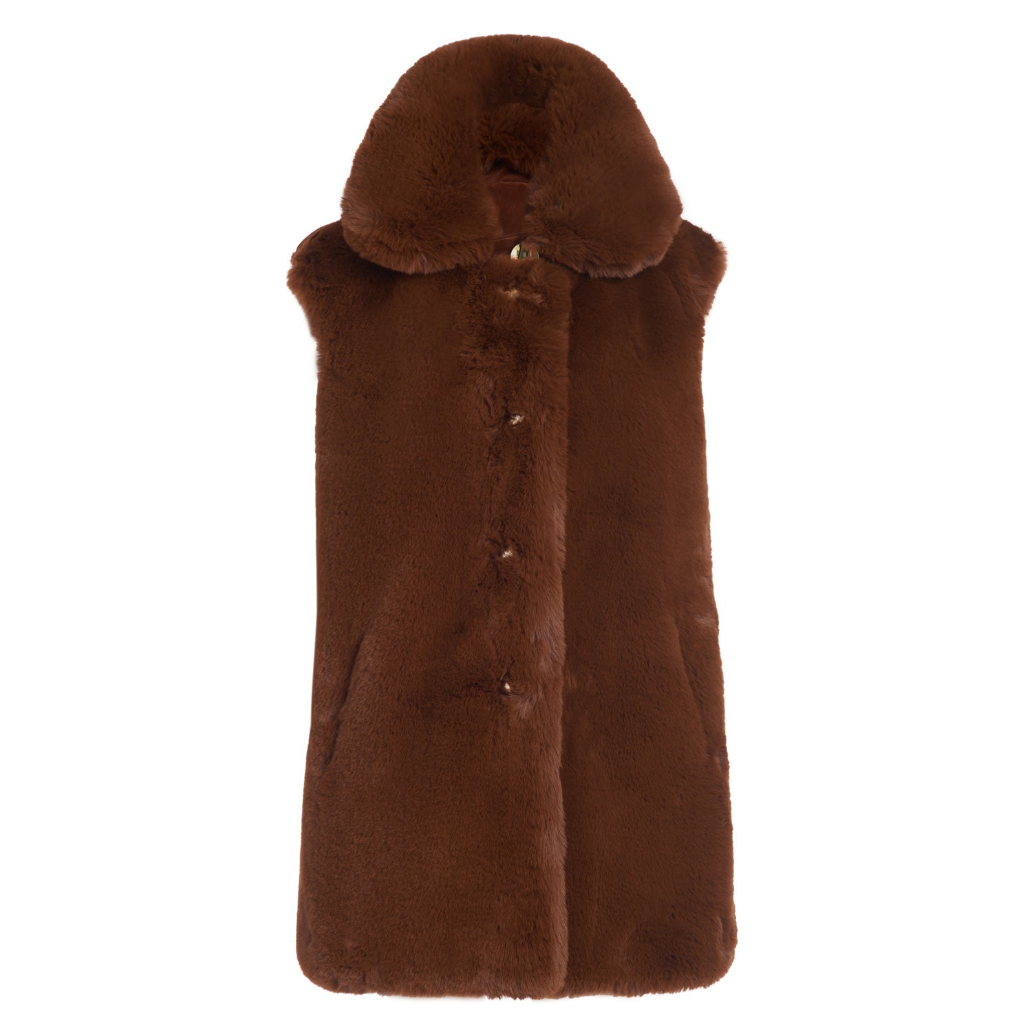 Rex Faux Fur Vest with Gold Buttons in Brown