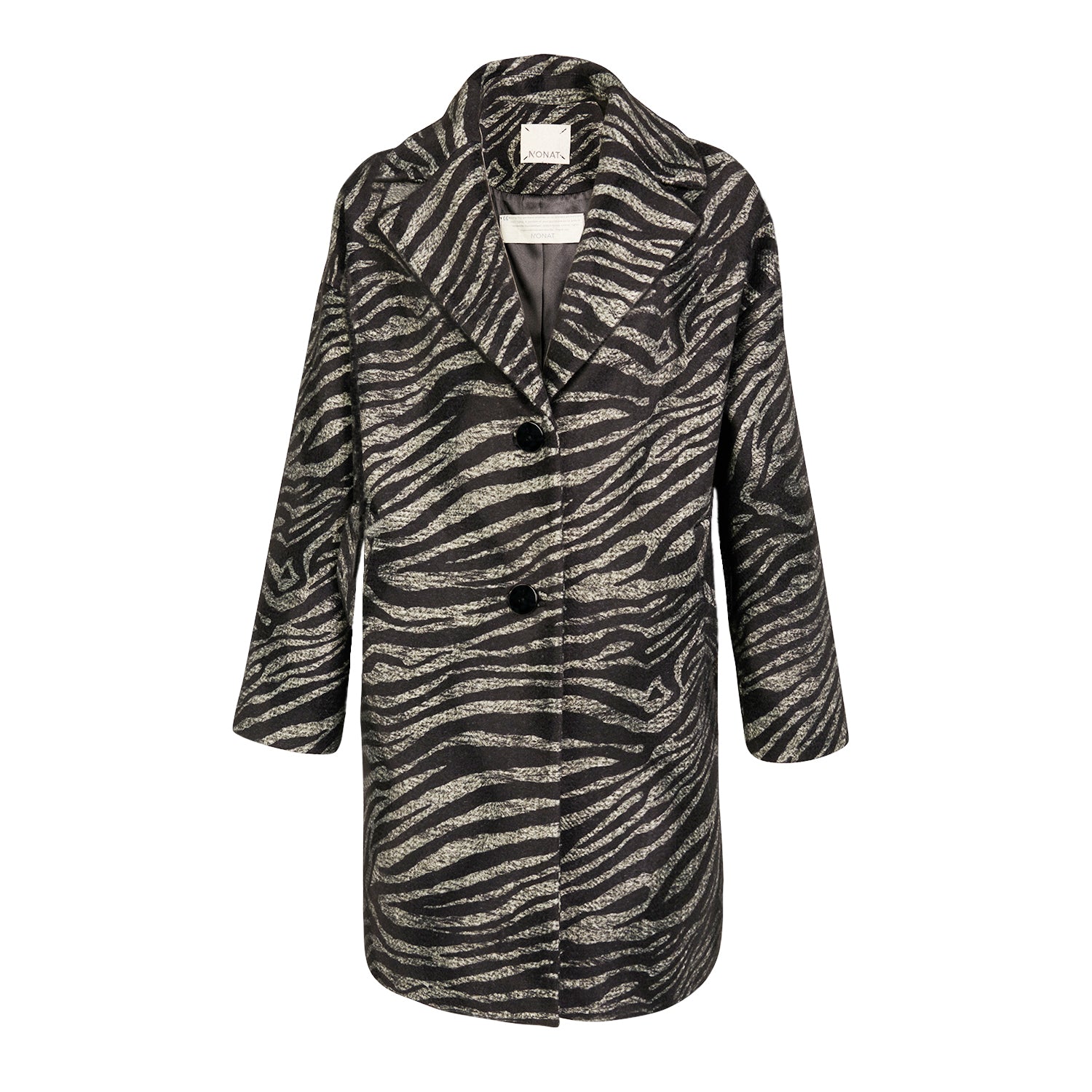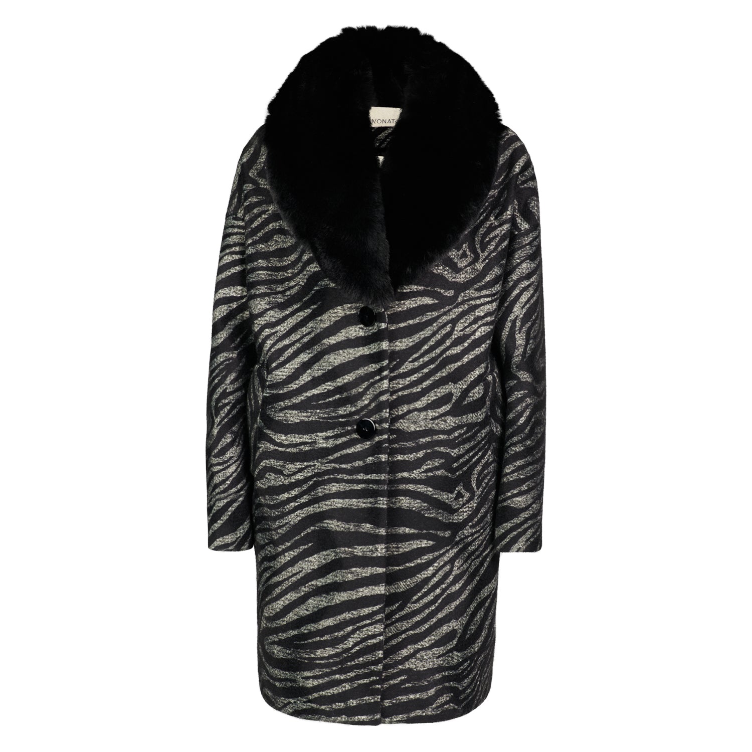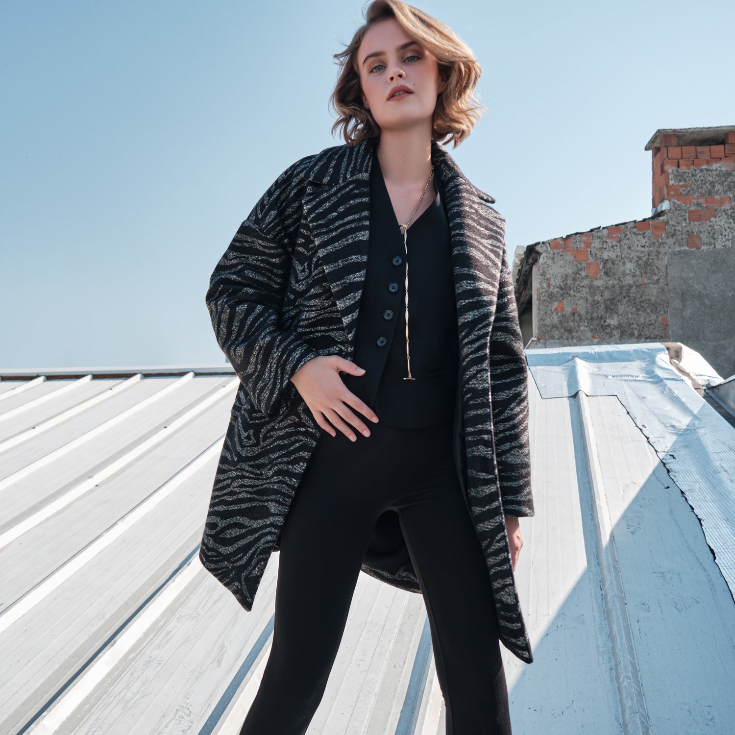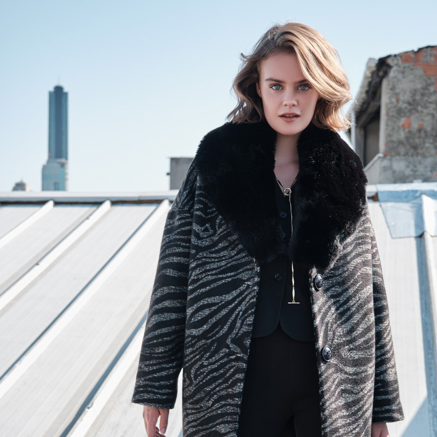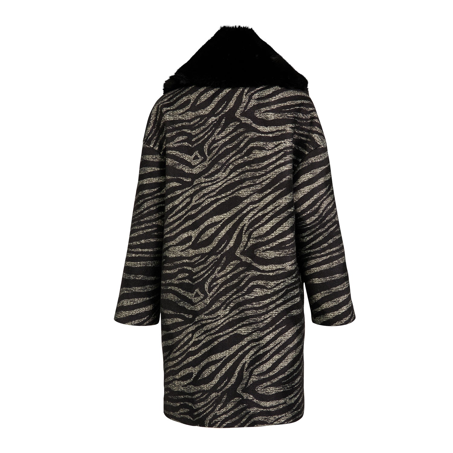 An animal printed, loose fit short coat that will have you stepping out in high style. Distinctively jaunty, an expression of your personal flair. You can use this coat with or without the extremely soft faux fur collar, which comes included.