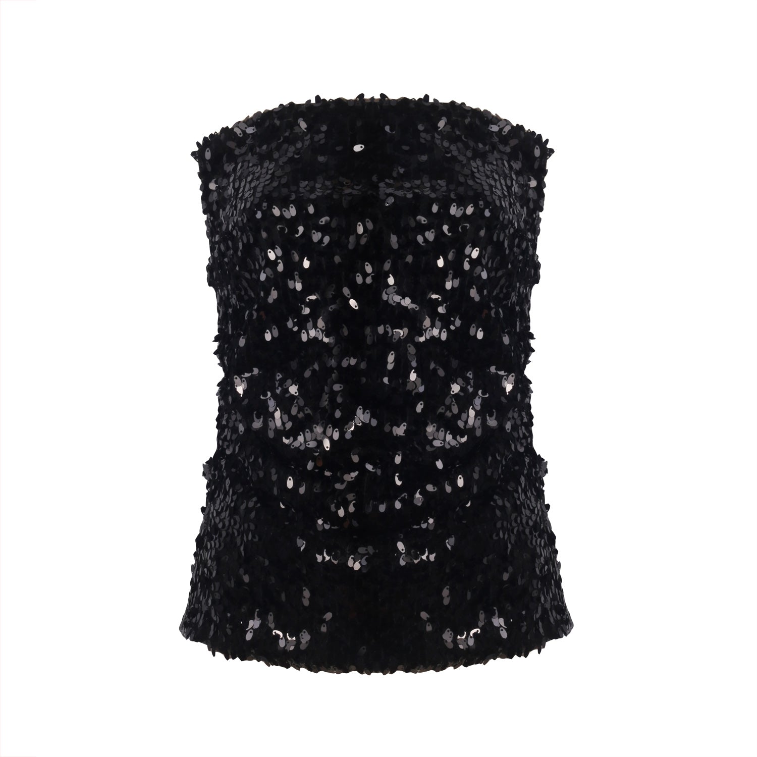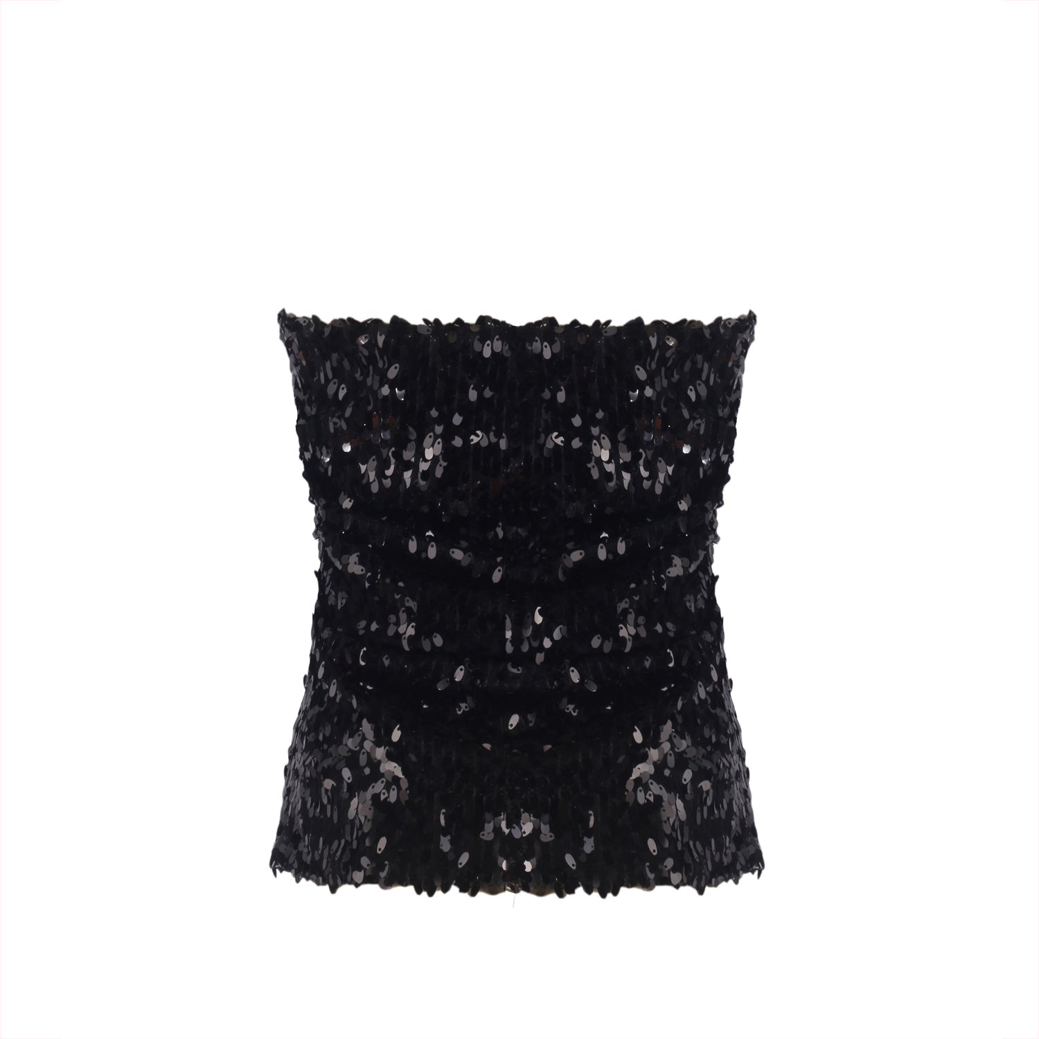 A touch of glamour! This sexy strapless top is a must-have for your wardrobe. Perfect for nights out, weddings and parties. Closes with a zip on the side and has small vents on both sides.