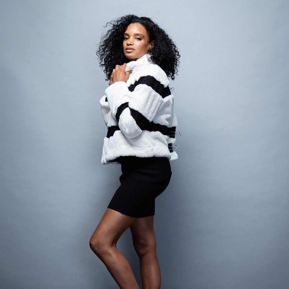 This ski resort inspired box cut zip jacket will keep you feeling lux vintage-chic from Vail to NYC. Fabric and zippers are made from eco-friendly recycled materials. The perfect addition for your year-round staple wardrobe.