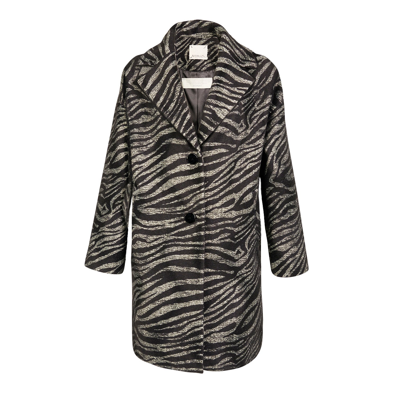 Step out in effortless sophistication with this loose-fit, zebra-print vegan coat — a bold expression of personal style. Designed for versatility, it can be worn with or without the luxuriously soft faux fur collar, included for an added touch of elegance.